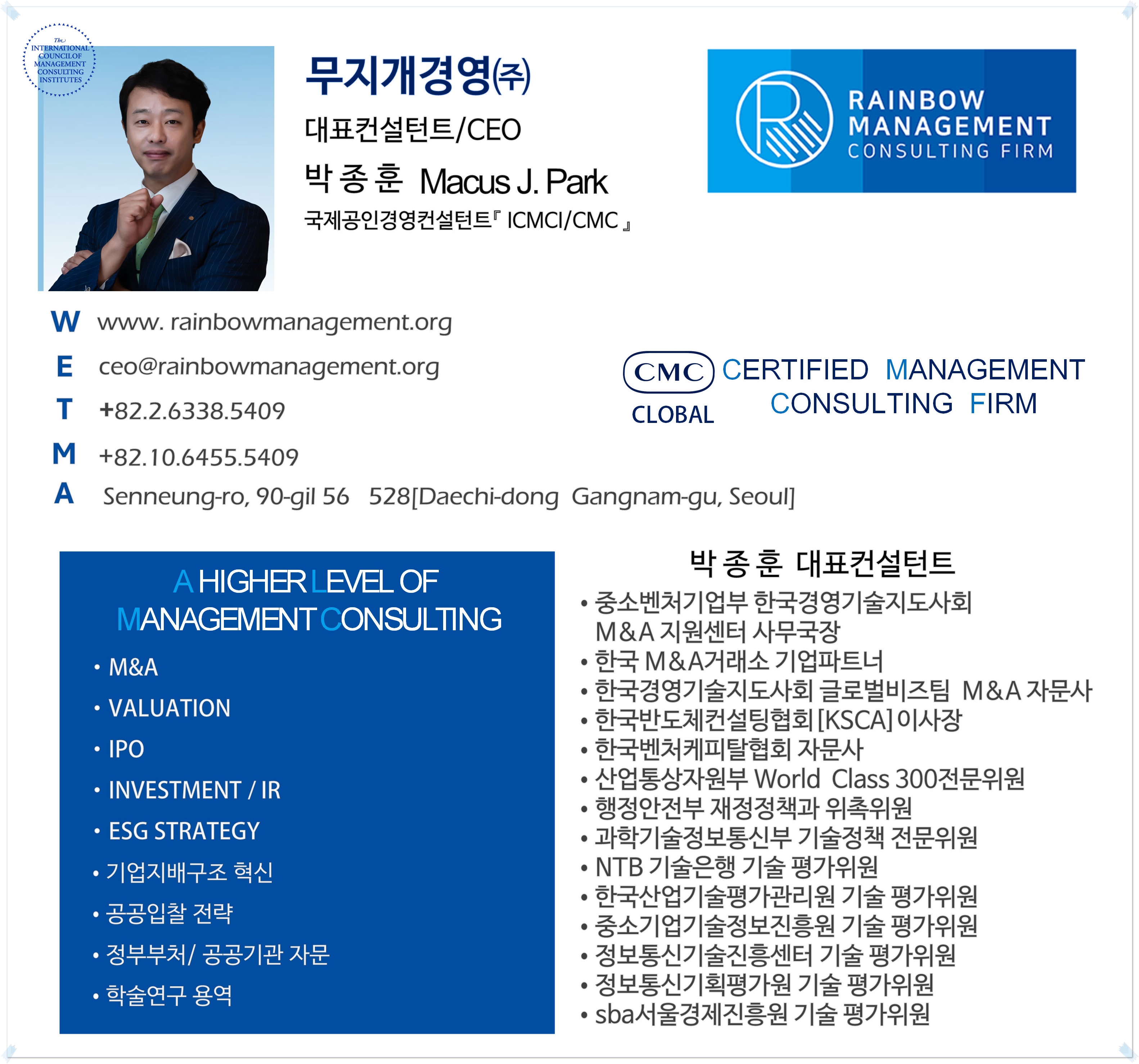 무지개경영(주) 대표컨설턴트 박 종 훈입니다.